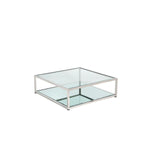 Glass Top, Mirror Shelf, Stainless Steel Base Coffee Table