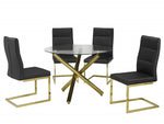 Round Glass Top with Gold Finish Legs Table with Leather Chairs with Gold Finish Legs Chairs 5Pcs Dining Set -Black Chairs #034195