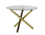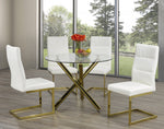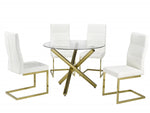 Round Glass Top with Gold Finish Legs Table with Leather Chairs with Gold Finish Legs Chairs 5Pcs Dining Set -White Chairs #034195