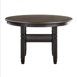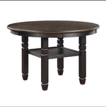 The transitional style of this Dining Set creates a versatile platform to inspire your casual dining room décor. The round dining height table’s support base features a display shelf that allows for quick and open access to your tabletop accessories. The antique black finish over acacia veneer serves to highlight the wood’s grain while allowing for maximum versatility in decorative accenting.
