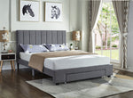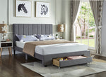 Grey Fabric Bed with Padded Headboard and Storage Drawer