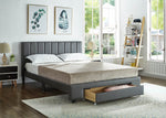 Grey PU Bed with Padded Headboard and Storage Drawer