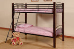 This piece has a charming casual style, with black metal tubing, featuring a gentle arch. Metal side guard rails will keep your safe on the top bunk, while an attached ladder makes it easy to get up and down. Rich espresso wood posts at each corner soften the look.