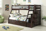 Maximizing sleep space is achieved with this Solid Wood Bunk Bed. This transitional twin over Full reversible storage stairstep bunkbed is featured in a white finish making it an appropriate choice for a number of youth bedroom settings.