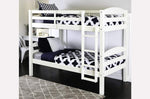 This twin over twin bunk bed will make a practical addition to your home. Full length guardrails offer safety, while the coordinating ladder will conveniently lead you to the top bunk. Clean lines and pine solids bathed in a rich white finish compose a relaxed comforting style your children will enjoy.