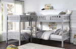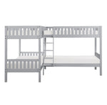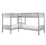Solid Wood Single Over Single Corner Bunk Bed with Ladder- Grey #112063