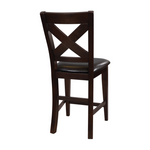 Adorn your dining area with this classical table set. This grand scale casual dining in warm merlot finish is as strong and durable as they are stunning. Table top is constructed of mango veneer with strong support tapered legs. Attractive X-back dining chair with comfortable leather-look brown seat completes the unsophisticated streamlined look.
