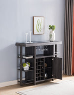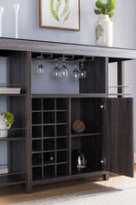 Rich, dark tones are complemented by straight, clean edges making this freestanding bar unit the perfect modern addition to your entertaining space. From top to bottom, it offers practicality with loads of storage and display...