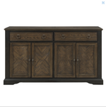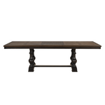 The traditional styling that comprises the design of the Stonington Collection creates an elegant country look for your dining room. Oak and walnut-inlay veneers are finished in a 2-tone brown and charcoal creating a perfect contrast that highlights the distinct patterns of each wood’s grain. A self-storing extension leaf allows for both convenient placement and expansion of your table to fit your desired number of guests.