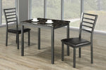 This 3Pcs dining set with faux marble top and black leatherette chairs gives your dining space a sleek and smooth look. Fully assembled chairs.