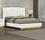 - Featuring Solid wood in laquer white finish with PU headboard.
