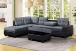Sectional Sofa with Reversible Chaise and Storage Ottoman- Black/Blue
