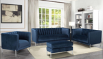 Velvet Sofa Set with Chrome Legs- Blue Color #0619043